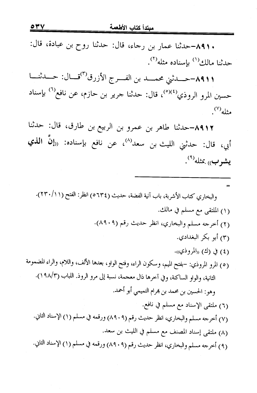 (¬5) أخرجه مسلم والبخاري، انظر حديث رقم (8909) ورقمه في مسلم (1) الإسناد الثاني.