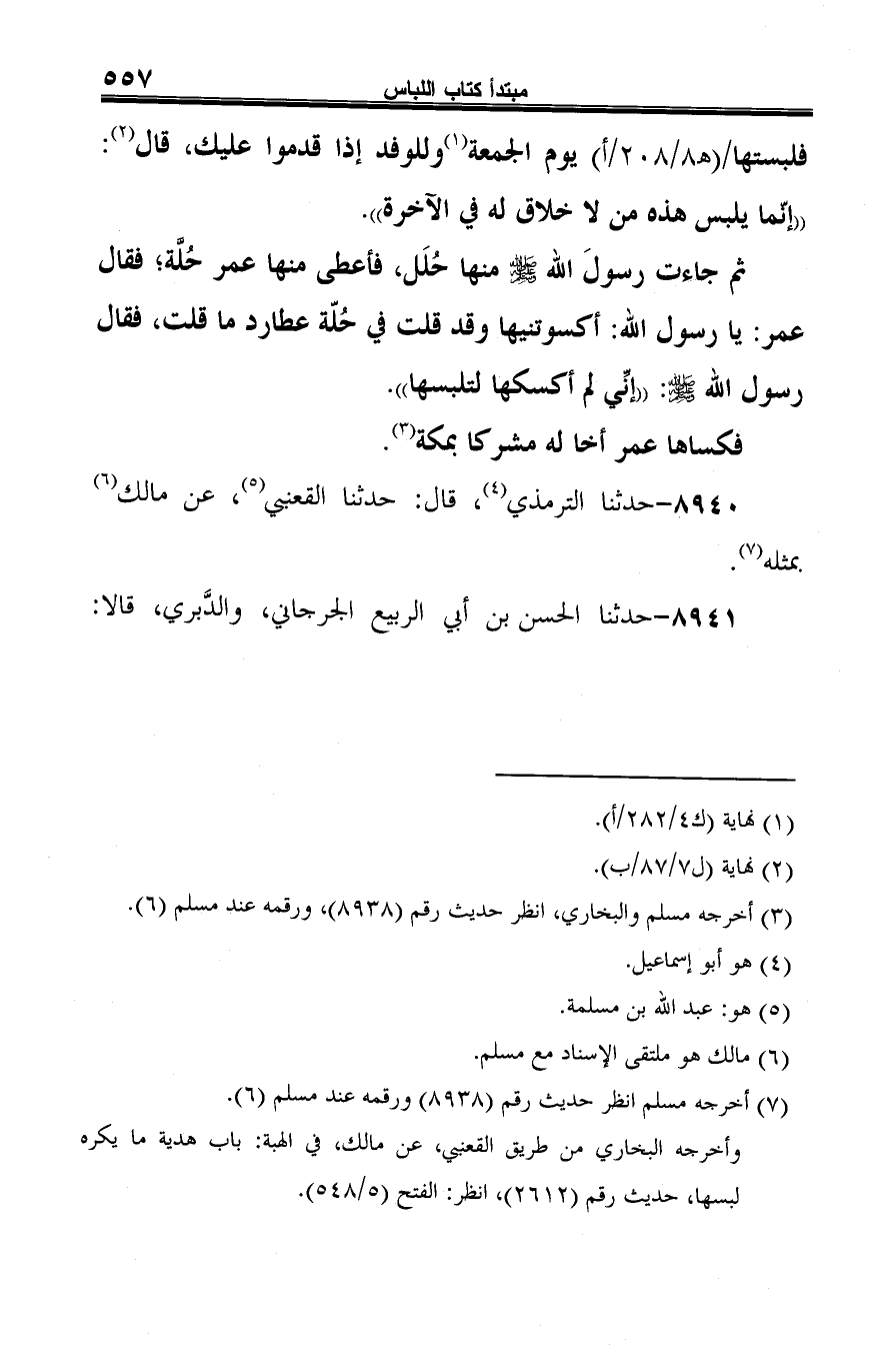 وأخرجه البخاري من طريق القعنبي، عن مالك، في الهبة: باب هدية ما يكره لبسها، حديث رقم (2612)، انظر: الفتح (5/ 548).