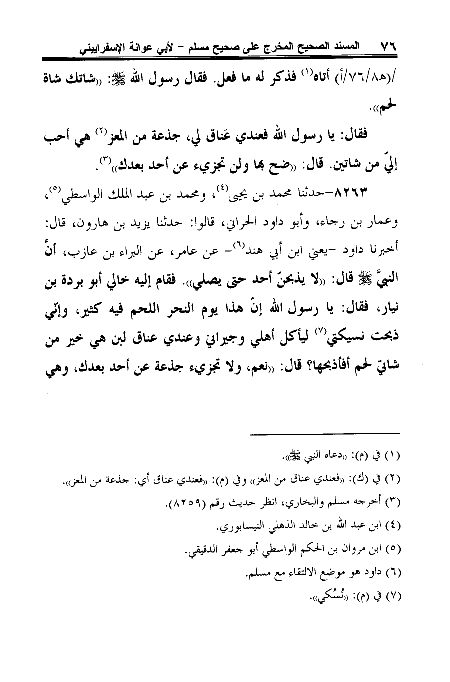 (¬6) في الأصل زيادة مشار عليها بالحذف ولم ترد في (ك) وهي في (م)، وهي: "حديثهم واحد إلا أن محمد بن يحيى وأبا داود قالا: خالي أبو بردة بن نيار".