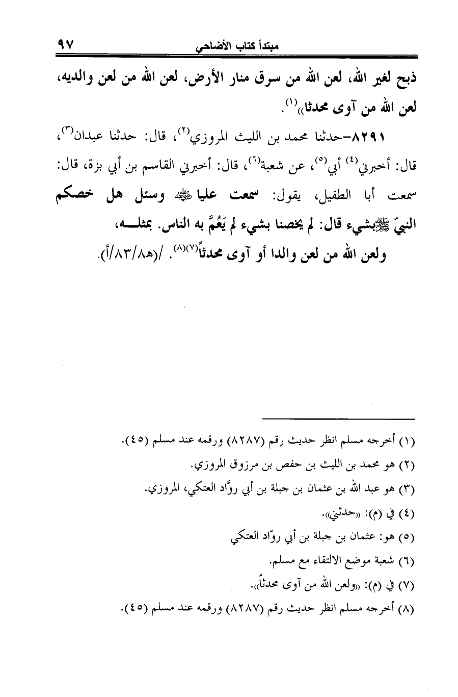(¬7) أخرجه مسلم انظر حديث رقم (8287) ورقمه عند مسلم (45).