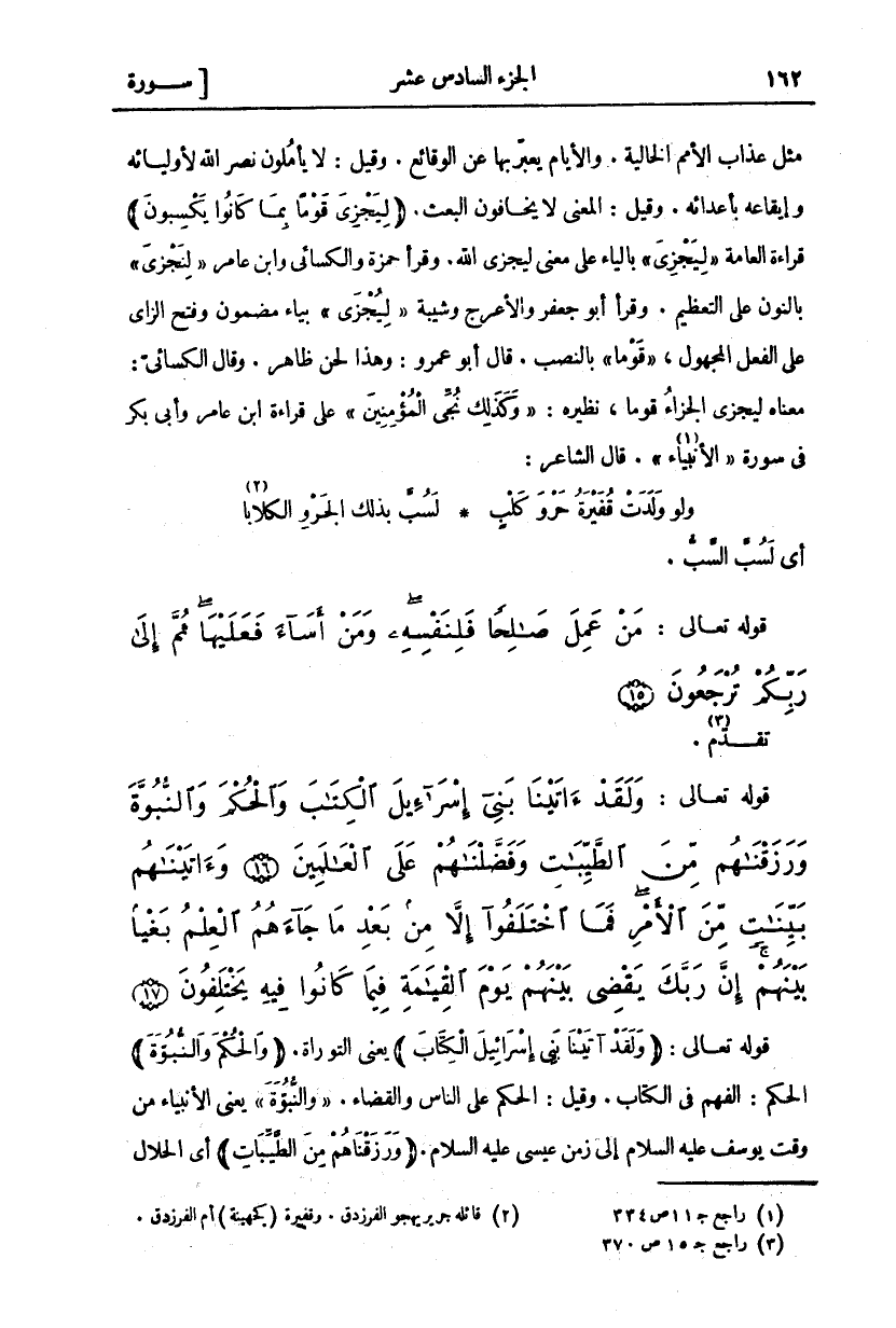 وَلَقَدْ آتَيْنا بَنِي إِسْرائِيلَ الْكِتابَ وَالْحُكْمَ وَالنُّبُوَّةَ وَرَزَقْناهُمْ مِنَ الطَّيِّباتِ وَفَضَّلْناهُمْ عَلَى الْعالَمِينَ (١٦) وَآتَيْناهُمْ بَيِّناتٍ مِنَ الْأَمْرِ فَمَا اخْتَلَفُوا إِلاَّ مِنْ بَعْدِ مَا جاءَهُمُ الْعِلْمُ بَغْياً بَيْنَهُمْ إِنَّ رَبَّكَ يَقْضِي بَيْنَهُمْ يَوْمَ الْقِيامَةِ فِيما كانُوا فِيهِ يَخْتَلِفُونَ (١٧)