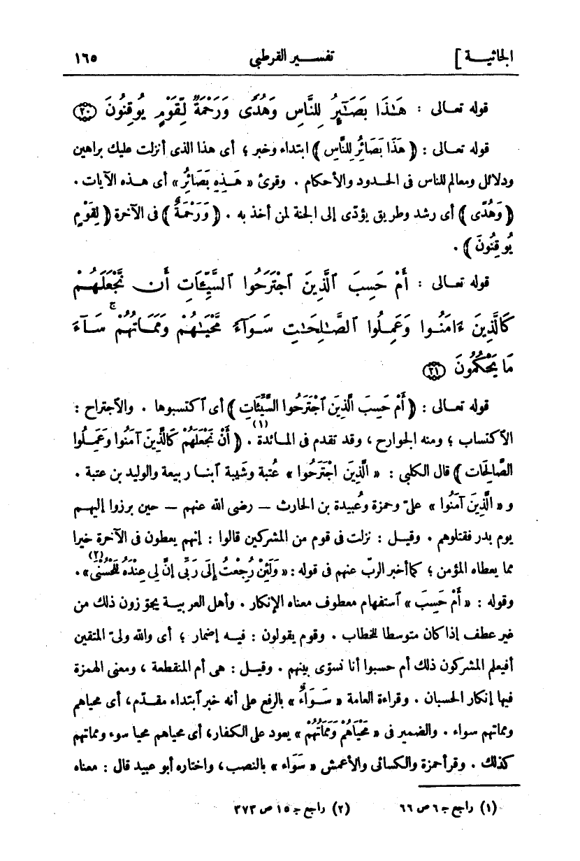قَوْلُهُ تَعَالَى:" أَمْ حَسِبَ الَّذِينَ اجْتَرَحُوا السَّيِّئاتِ