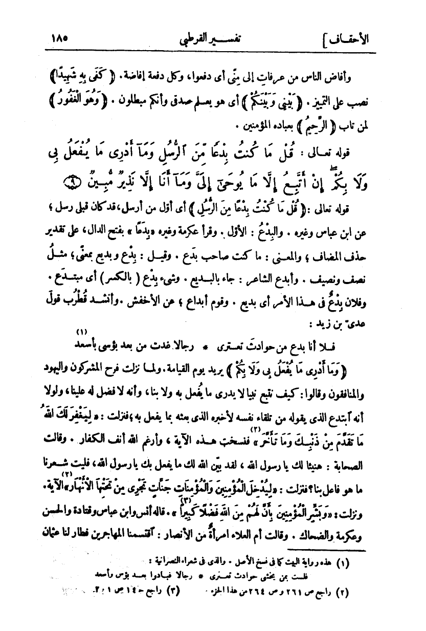 قَوْلُهُ تَعَالَى:" قُلْ مَا كُنْتُ بِدْعاً مِنَ الرُّسُلِ" أَيْ أَوَّلُ مَنْ أُرْسِلَ، قَدْ كَانَ قَبْلِي رُسُلٌ، عَنِ ابْنِ عَبَّاسٍ وَغَيْرِهِ. وَالْبِدْعُ: الْأَوَّلُ. وَقَرَأَ عِكْرِمَةُ وَغَيْرُهُ" بِدَعًا" بِفَتْحِ الدَّالِ، عَلَى تَقْدِيرِ حَذْفِ الْمُضَافِ، وَالْمَعْنَى: مَا كُنْتُ صَاحِبَ بِدَعٍ. وَقِيلَ: بِدْعٌ وَبَدِيعٌ بِمَعْنًى، مِثْلُ نِصْفٍ وَنَصِيفٍ. وَأَبْدَعَ الشَّاعِرُ: جاء بالبديع. وشئ بِدْعٌ (بِالْكَسْرِ) أَيْ مُبْتَدَعٌ. وَفُلَانٌ بِدْعٌ فِي هَذَا الْأَمْرِ أَيْ بَدِيعٌ. وَقَوْمٌ أَبْدَاعٌ، عَنِ الْأَخْفَشِ. وَأَنْشَدَ قُطْرُبٌ قَوْلَ عَدِيِّ بْنِ زَيْدٍ:
