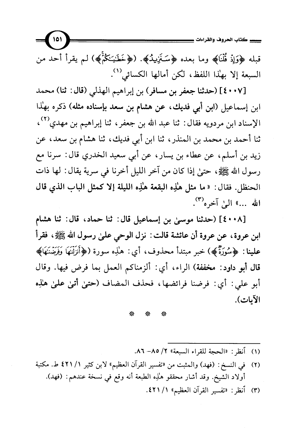(¬2) في النسخ: (فهد) والمثبت من "تفسير القرآن العظيم" لابن كثير 1/ 421 ط. مكتبة أولاد الشيخ. وقد أشار محققو هذِه الطبعة أنه وقع في نسخة عندهم: (فهد).