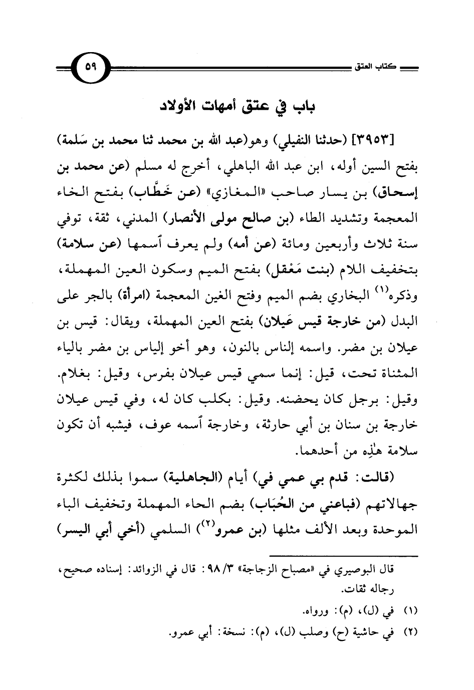 [3953] (حدثنا النفيلي) وهو (عبد اللَّه بن محمد ثنا محمد بن سَلمة) بفتح السين أوله، ابن عبد اللَّه الباهلي، أخرج له مسلم (عن محمد بن إسحاق) بن يسار صاحب "المغازي" (عن خَطَّاب) بفتح الخاء المعجمة وتشديد الطاء (بن صالح مولى الأنصار) المدني، ثقةٌ، توفي سنة ثلاث وأربعين ومائة (عن أمه) ولم يعرف اسمها (عن سلامة) بتخفيف اللام (بنت مَعْقل) بفتح الميم وسكون العين المهملة، وذكره (¬1) البخاري بضم الميم وفتح الغين المعجمة (امرأة) بالجر على البدل (من خارجة قيس عَيلان) بفتح العين المهملة، ويقال: قيس بن عيلان بن مضر. واسمه إلناس بالنون، وهو أخو إلياس بن مضر بالياء المثناة تحت، قيل: إنما سمي قيس عيلان بفرس، وقيل: بغلام. وقيل: برجل كان يحضنه. وقيل: بكلب كان له، وفي قيس عيلان خارجة بن سنان بن أبي حارثة، وخارجة اسمه عوف، فيشبه أن تكون سلامة هذِه من أحدهما.