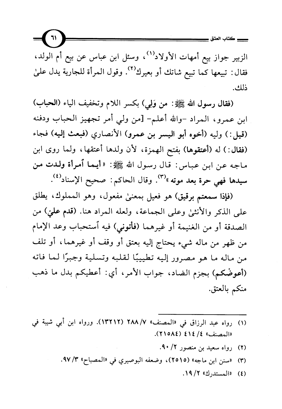 (فقال رسول اللَّه -صلى اللَّه عليه وسلم-: من وَلِي) بكسر اللام وتخفيف الياء (الحباب) ابن عمرو، المراد -واللَّه أعلم-[من ولي أمر تجهيز الحباب ودفنه (قيل: ) وليه (أخوه أبو اليسر بن عمرو) الأنصاري (فبعث إليه) فجاء (فقال: ) له (أعتقوها) بفتح الهمزة؛ لأن ولدها أعتقها, ولما روى ابن ماجه عن ابن عباس: قال رسول اللَّه -صلى اللَّه عليه وسلم-: "أيما امرأة ولدت من سيدها فهي حرة بعد موته" (¬3). وقال الحاكم: صحيح الإسناد (¬4).