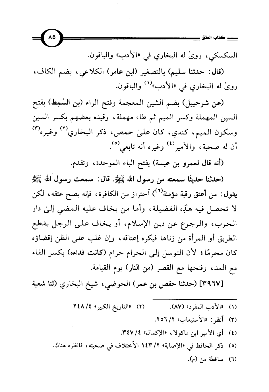 (¬5) ذكر الحافظ في "الإصابة" 2/ 143 الاختلاف في صحبته، فانظره هناك.