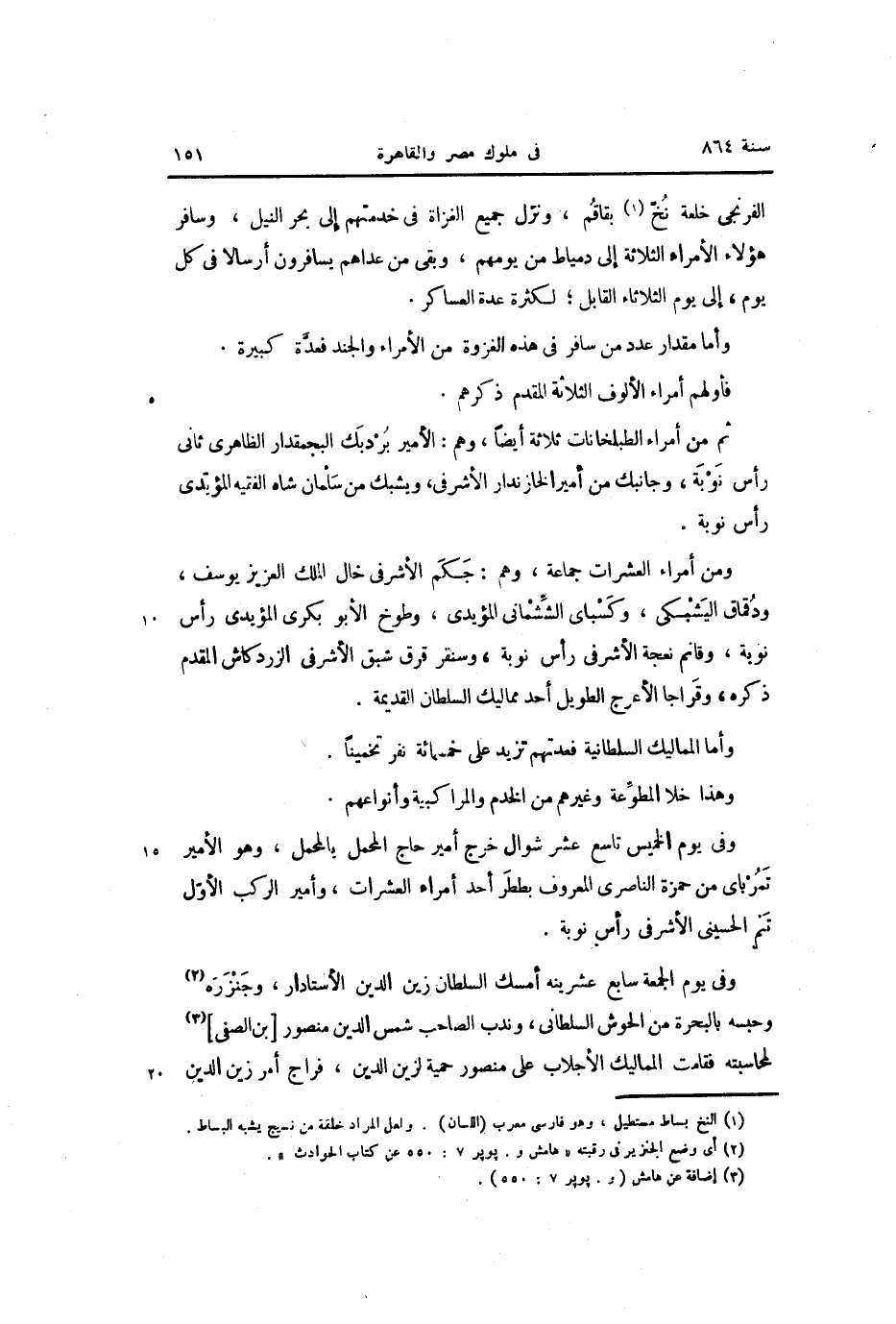 ومن أمراء العشرات جماعة، وهم: جكم الأشرفى خال الملك العزيز يوسف، ودقماق اليشبكى، وكسباى الشّشمانى المؤيدى، وطوخ الأبوبكريّ المؤيدى رأس نوبة، وقانم نعجة الأشرفى رأس نوبة، وسنقر قرق شبق الأشرفى الزردكاش المقدم ذكره، وقراجا الأعرج الطويل أحد مماليك السلطان القديمة.