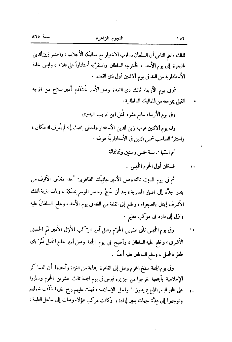 ثم في يوم الأربعاء ثالث ذى القعدة وصل الأمير خشقدم أمير سلاح من الوجه القبلى بمن معه من المماليك السلطانية.