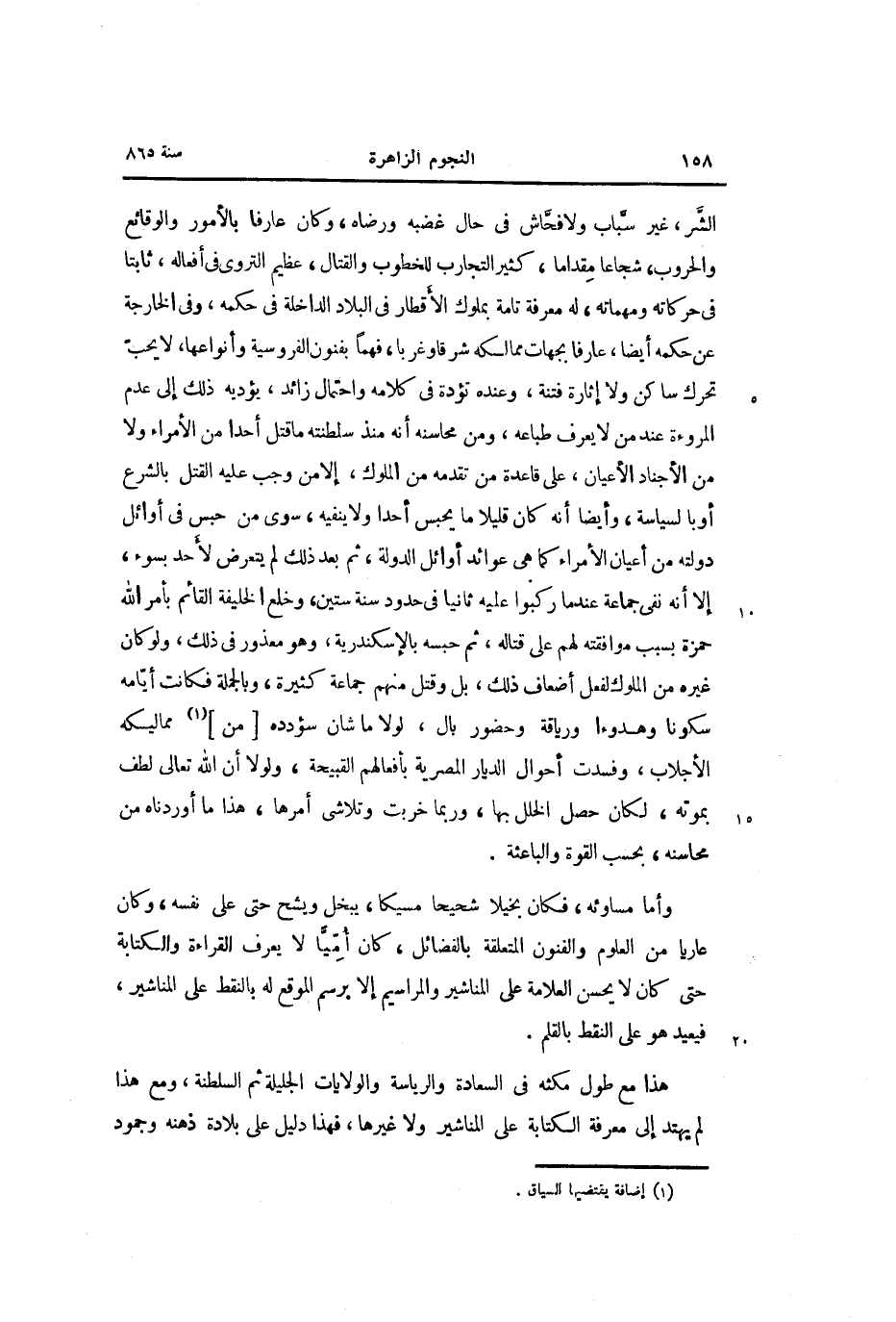 هذا مع طول مكثه في السعادة والرياسة والولايات الجليلة ثم السلطنة، ومع هذا لم يهتد إلى معرفة الكتابة على المناشير ولا غيرها، فهذا دليل على بلادة ذهنه وجمود