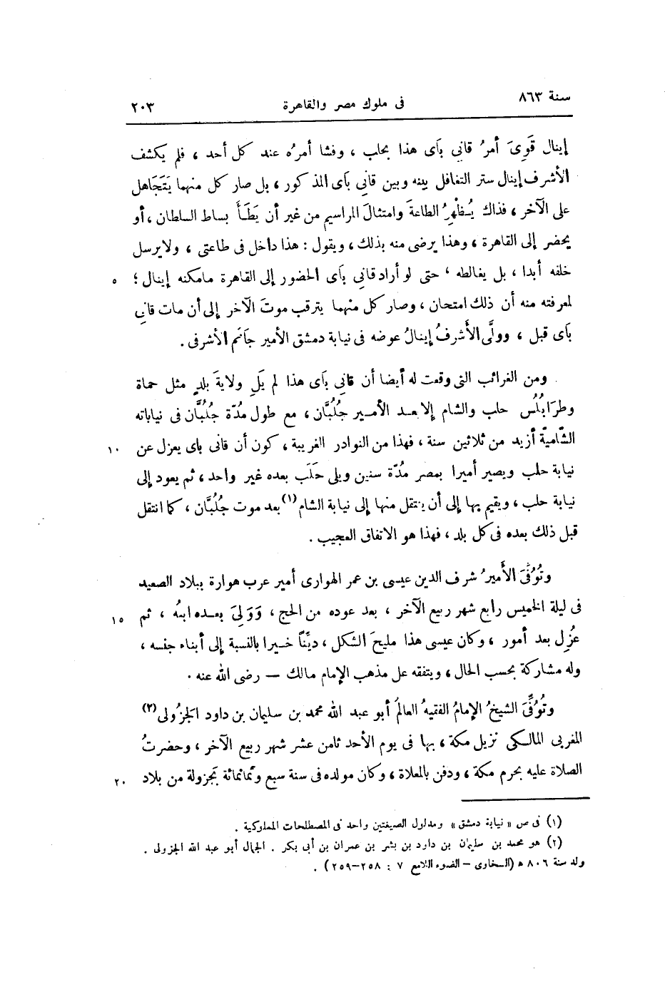 ومن الغرائب التي وقعت له أيضا أن قانى باى هذا لم يل ولاية بلد مثل حماة وطرابلس حلب والشام إلا بعد الأمير جلبّان، مع طول مدّة جلبّان في نياباته الشّاميّة أزيد من ثلاثين سنة، فهذا من النوادر الغريبة، كون أن قانى باى يعزل عن نيابة حلب ويصير أميرا بمصر مدّة سنين وبلى حلب بعده غير واحد، ثم يعود إلى نيابة حلب، ويقيم بها إلى أن ينتقل منها إلى نيابة الشام «1» بعد موت جلبّان، كما انتقل قبل ذلك بعده في كل بلد، فهذا هو الاتفاق العجيب.