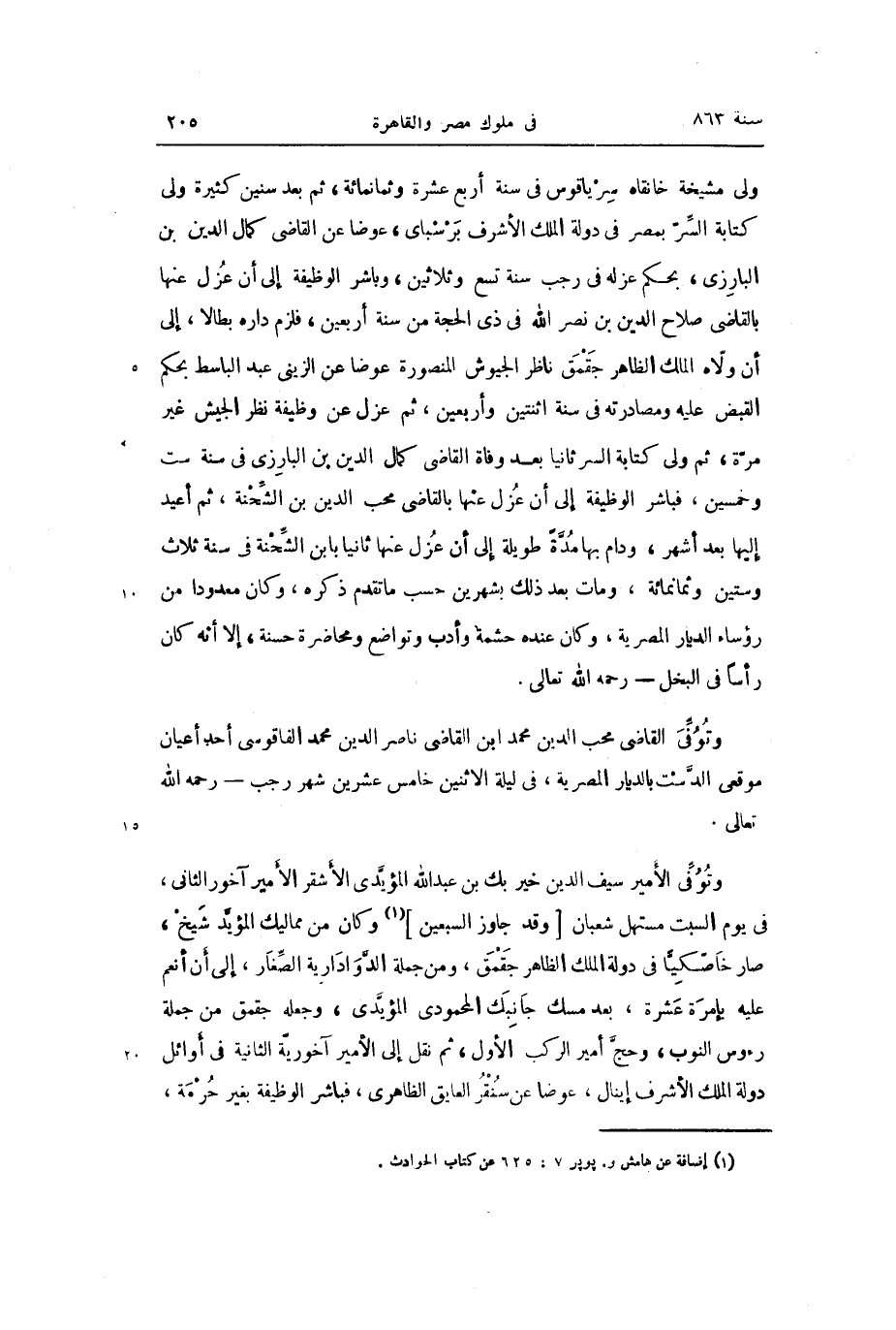 وتوفّى القاضى محب الدين محمد ابن القاضى ناصر الدين محمد الفاقوسى أحد أعيان موقعى الدّست بالديار المصرية، فى ليلة الاثنين خامس عشرين شهر رجب- رحمه الله تعالى.