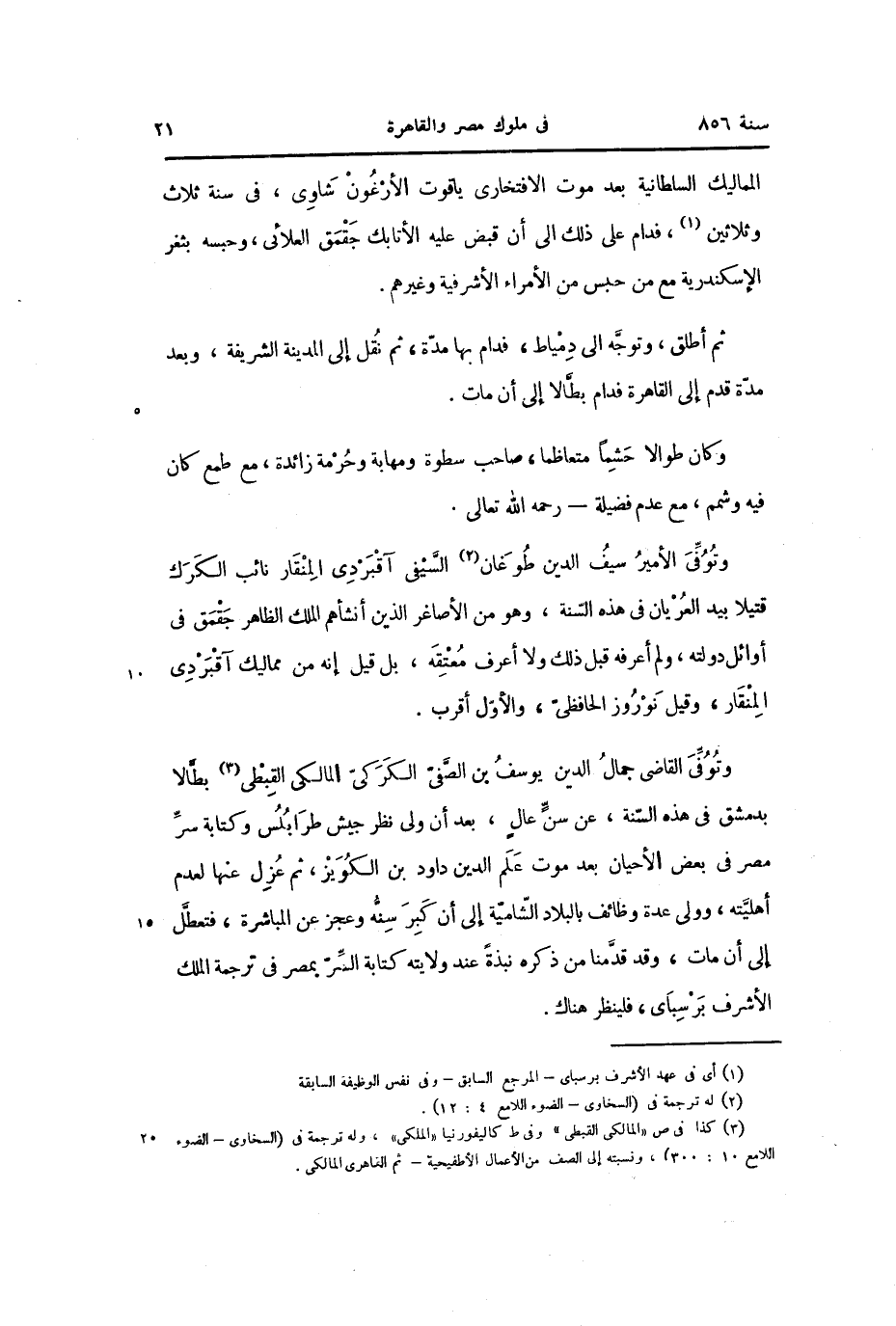 المماليك السلطانية بعد موت الافتخارى ياقوت الأرغون شاوى، فى سنة ثلاث وثلاثين «1» ، فدام على ذلك الى أن قبض عليه الأتابك جقمق العلائى، وحبسه بثغر الإسكندرية مع من حبس من الأمراء الأشرفية وغيرهم.