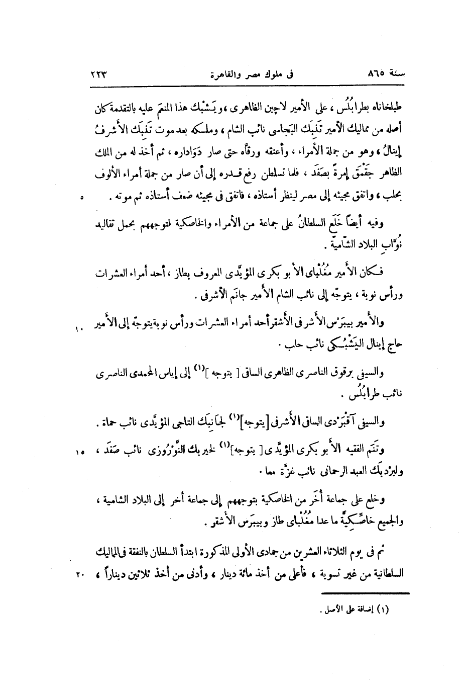 والأمير بيبرس الأشرفى الأشقر أحد أمراء العشرات ورأس نوبة يتوجّه إلى الأمير حاج إينال اليشبكى نائب حلب.