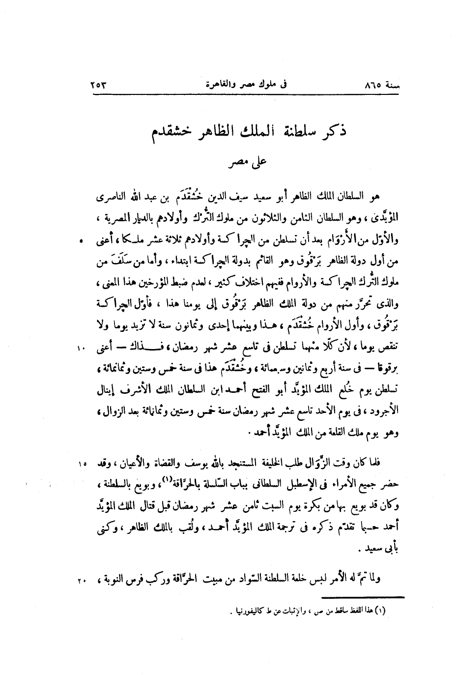 ذكر سلطنة الملك الظاهر خشقدم على مصر