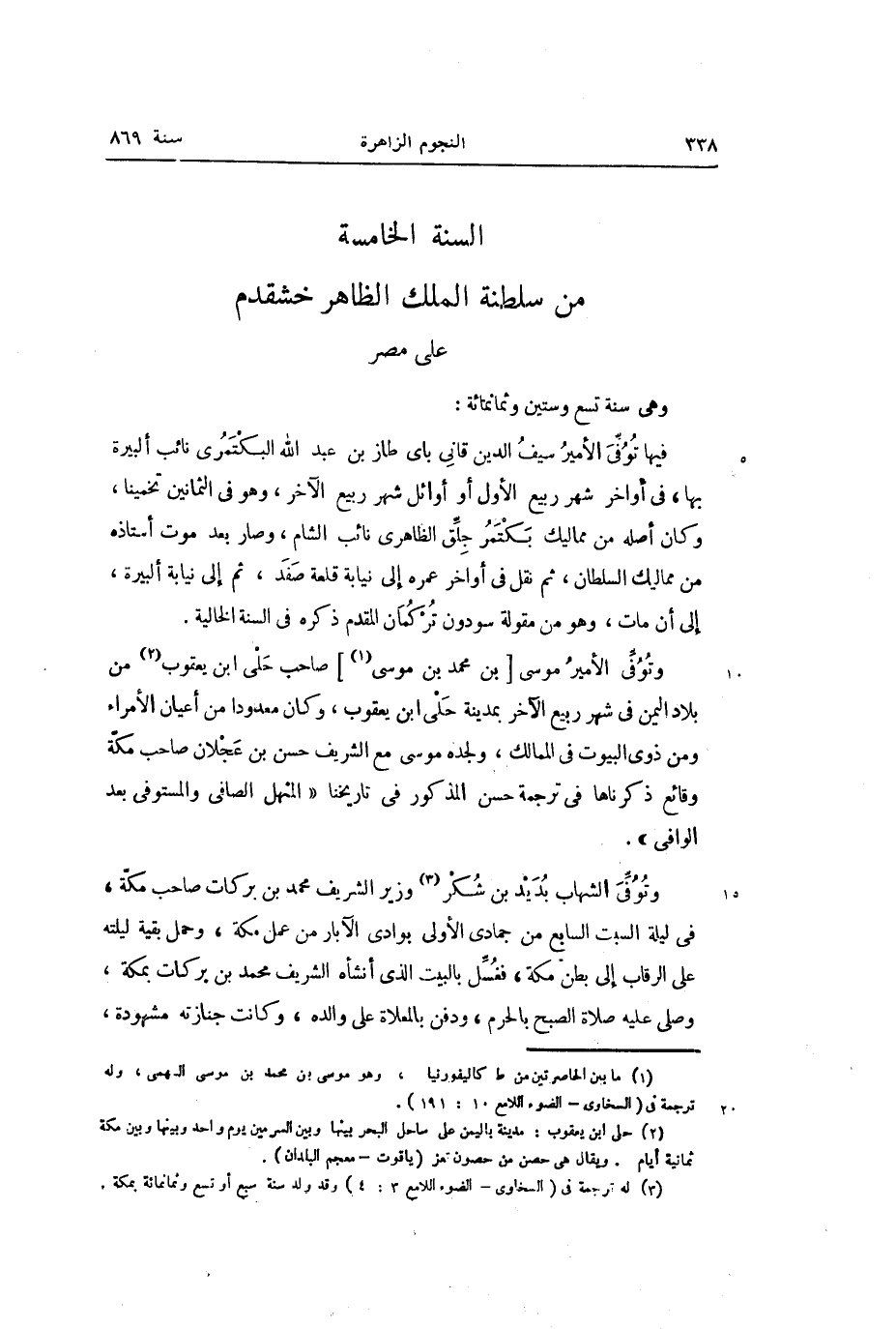 السنة الخامسة من سلطنة الملك الظاهر خشقدم على مصر وهى سنة تسع وستين وثمانمائة: