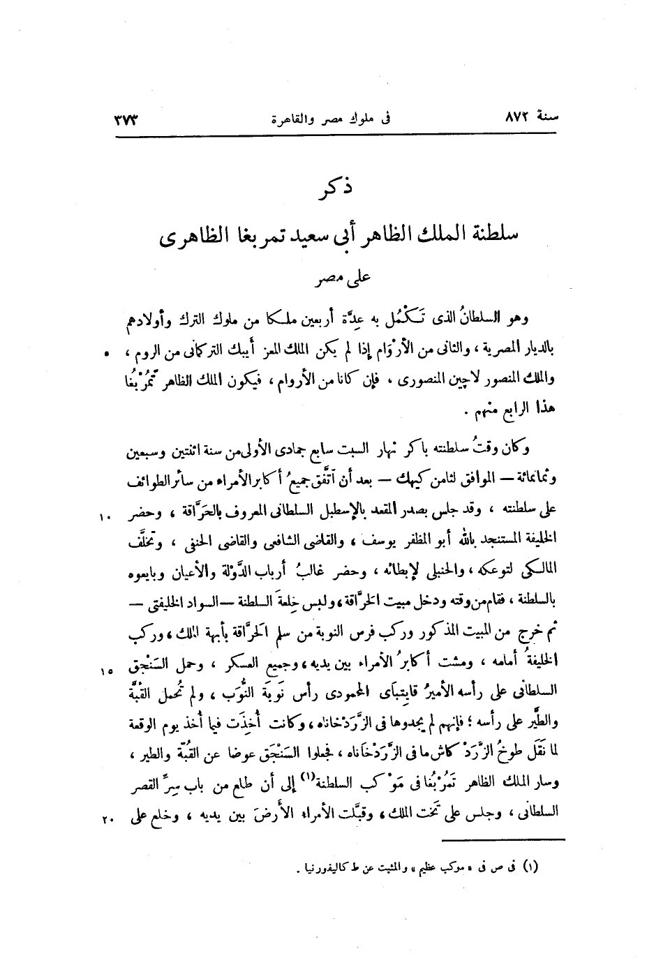 ذكر سلطنة الملك الظاهر أبى سعيد تمربغا الظاهرى على مصر