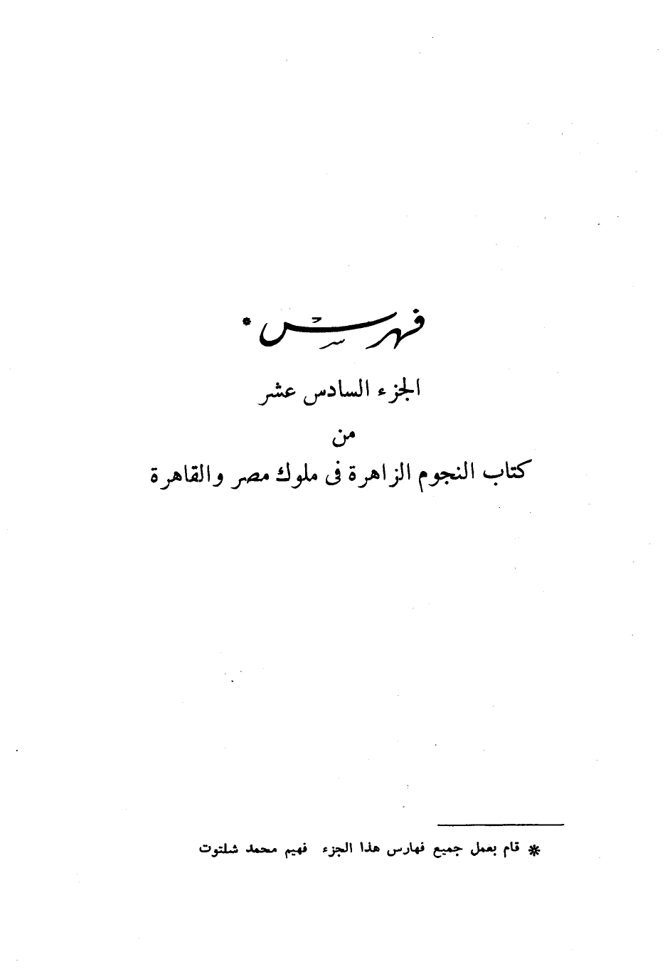«1» الجزء السادس عشر من كتاب النجوم الزاهرة في ملوك مصر والقاهرة