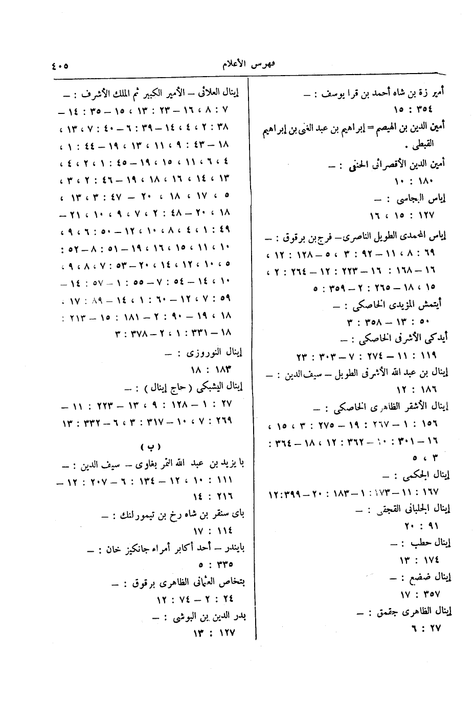 إينال اليشبكى (حاج إينال) :- 27: 1- 128: 9، 13- 223: 11- 269: 7، 10- 317: 3، 6- 332: 13