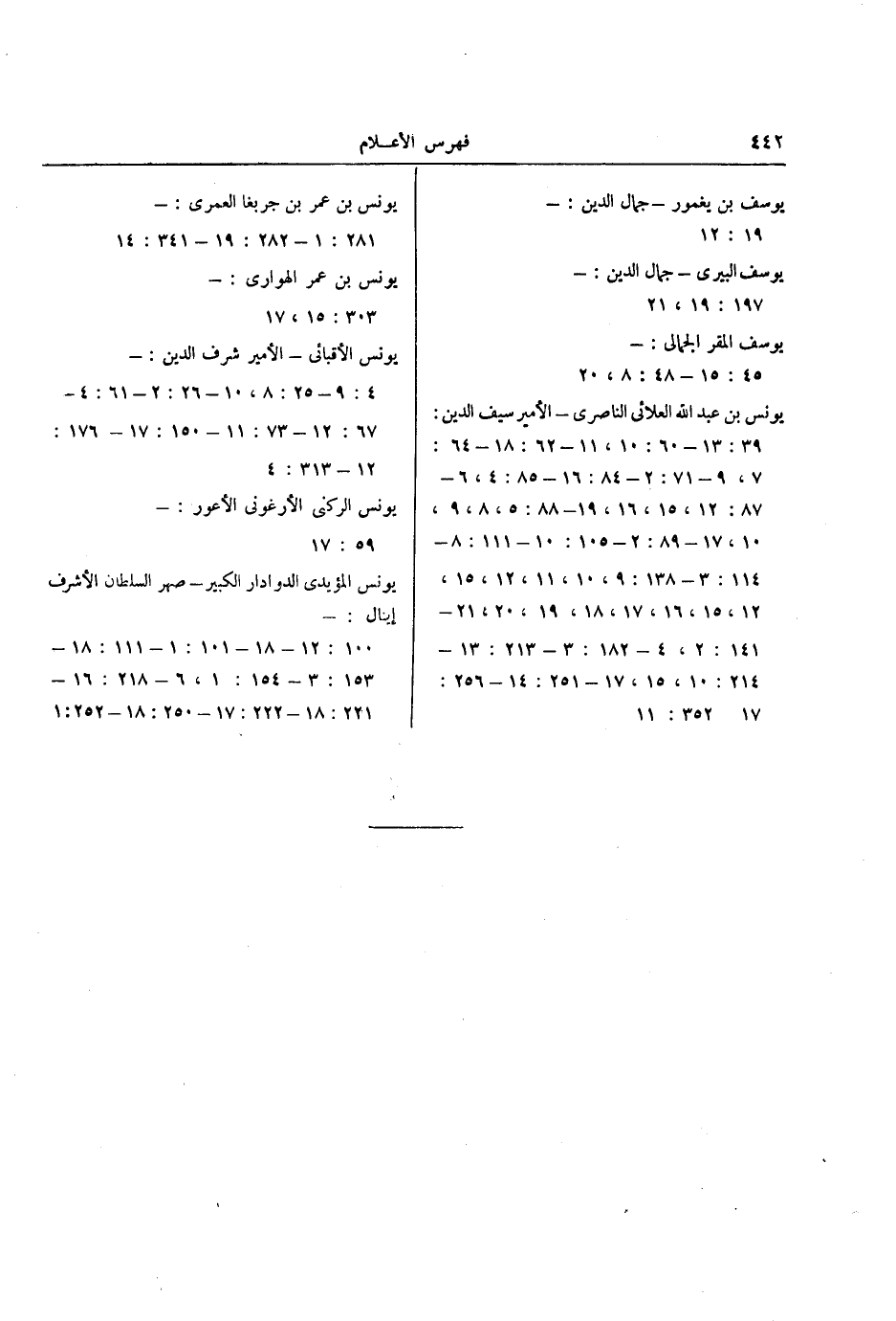 يونس المؤيدى الدوادار الكبير- صهر السلطان الأشرف إينال:- 100: 12- 18- 101: 1- 111: 18- 153: 3- 154: 1، 6- 218: 16- 221: 18- 222: 17- 250: 18- 252: 1