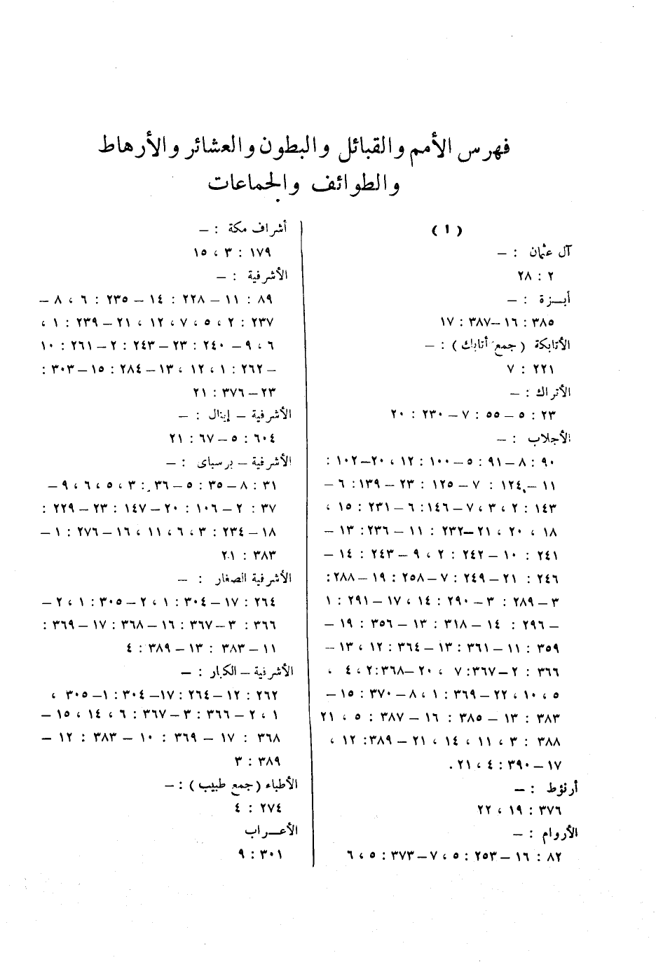 فهرس الأمم والقبائل والبطون والعشائر والأرهاط والطوائف والجماعات