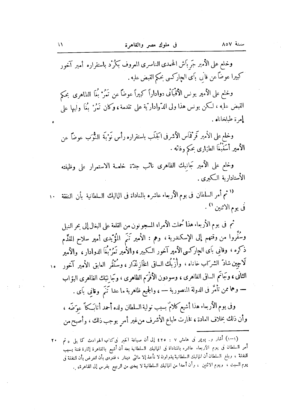 «1» ثم أمر السلطان في يوم الأربعاء عاشره بالمناداة في المماليك السلطانية بأن النفقة فى يوم الاثنين «2» .