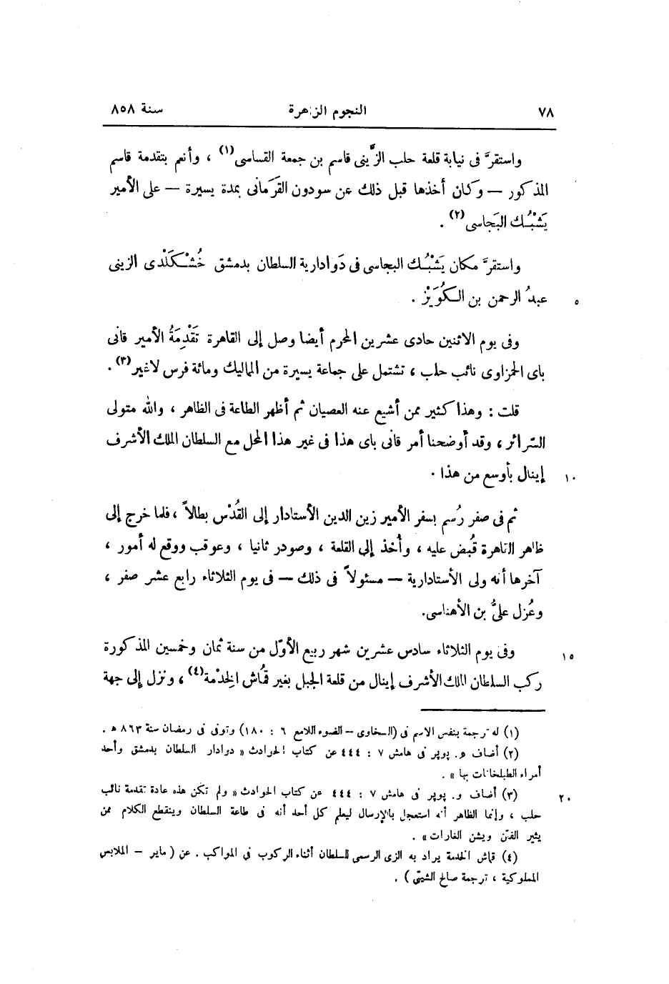 وفي يوم الثلاثاء سادس عشرين شهر ربيع الأوّل من سنة ثمان وخمسين المذكورة ركب السلطان الملك الأشرف إينال من قلعة الجبل بغير قماش الخدمة «4» ، ونزل إلى جهة