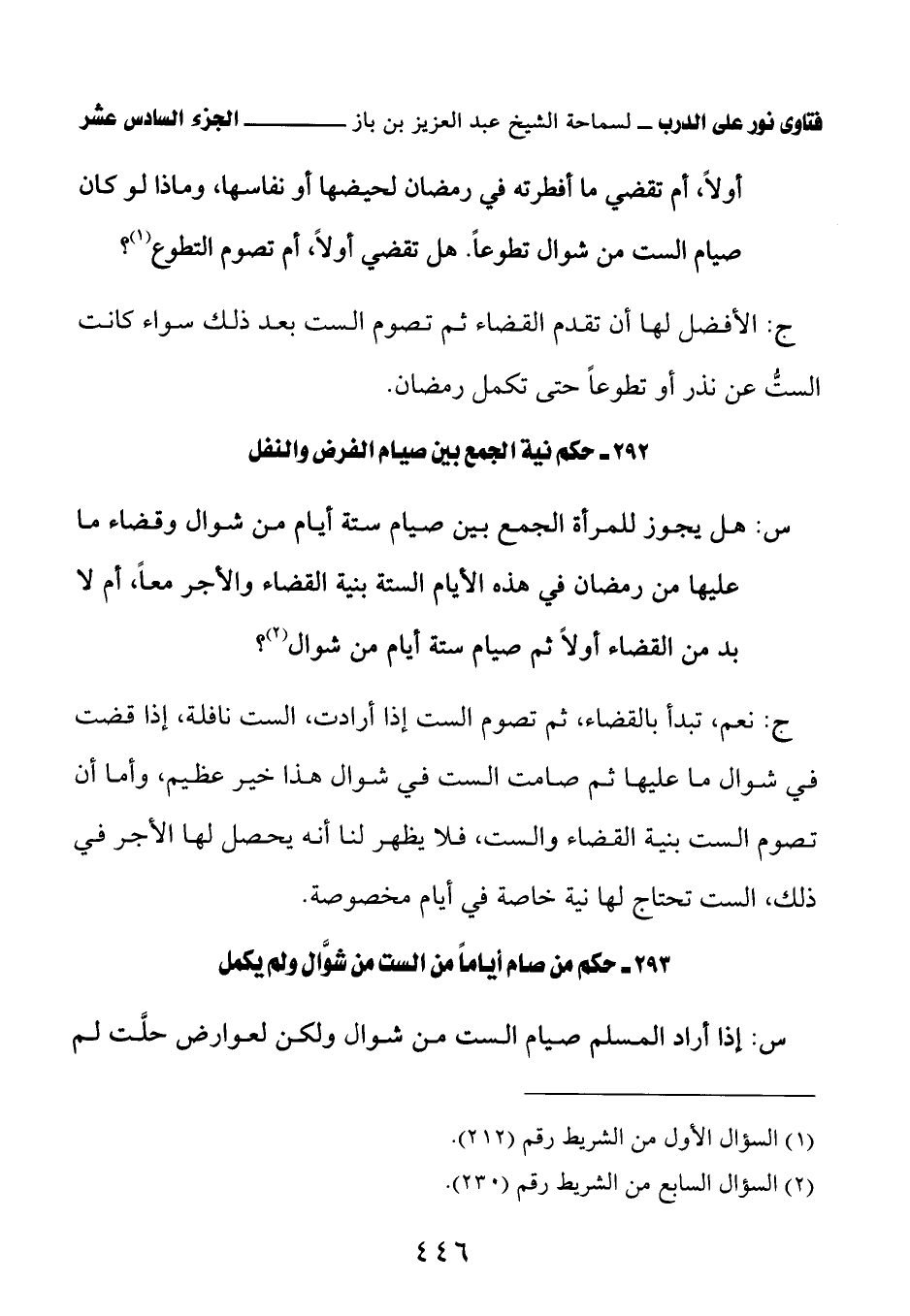 293 - حكم من صام أيامًا من الست من شوَّال ولم يكمل