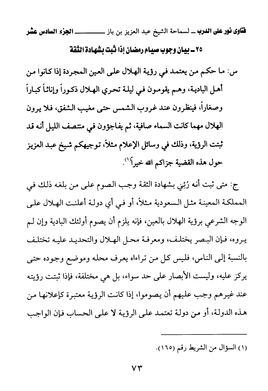 25 - بيان وجوب صيام رمضان إذا ثبت بشهادة الثقة