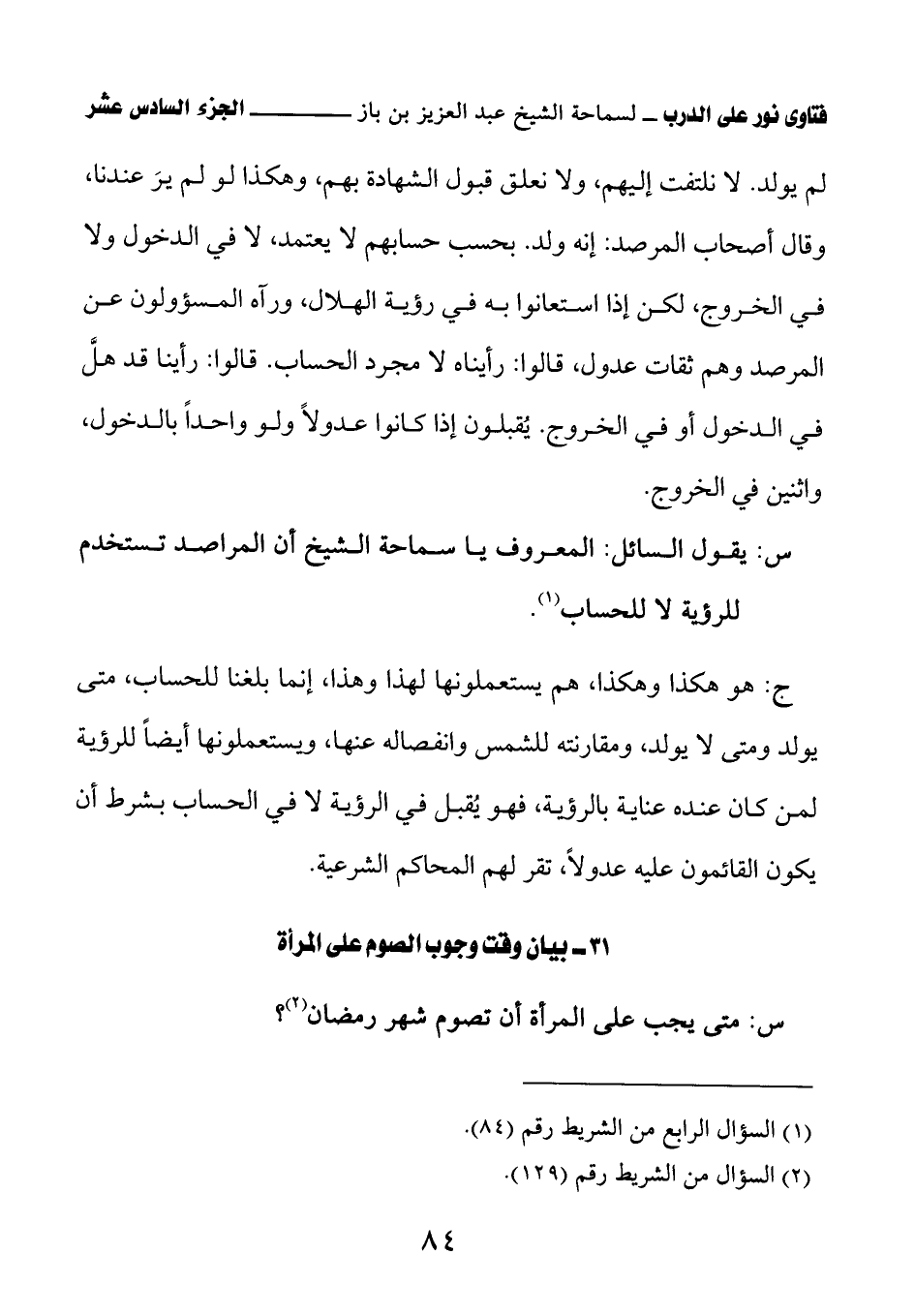 ج: هو هكذا وهكذا، هم يستعملونها لهذا وهذا، إنما بلغنا للحساب، متى يولد ومتى لا يولد، ومقارنته للشمس وانفصاله عنها، ويستعملونها أيضًا للرؤية لمن كان عنده عناية بالرؤية، فهو يُقبل في الرؤية لا في الحساب بشرط أن يكون القائمون عليه عدولاً، تقر لهم المحاكم الشرعية.