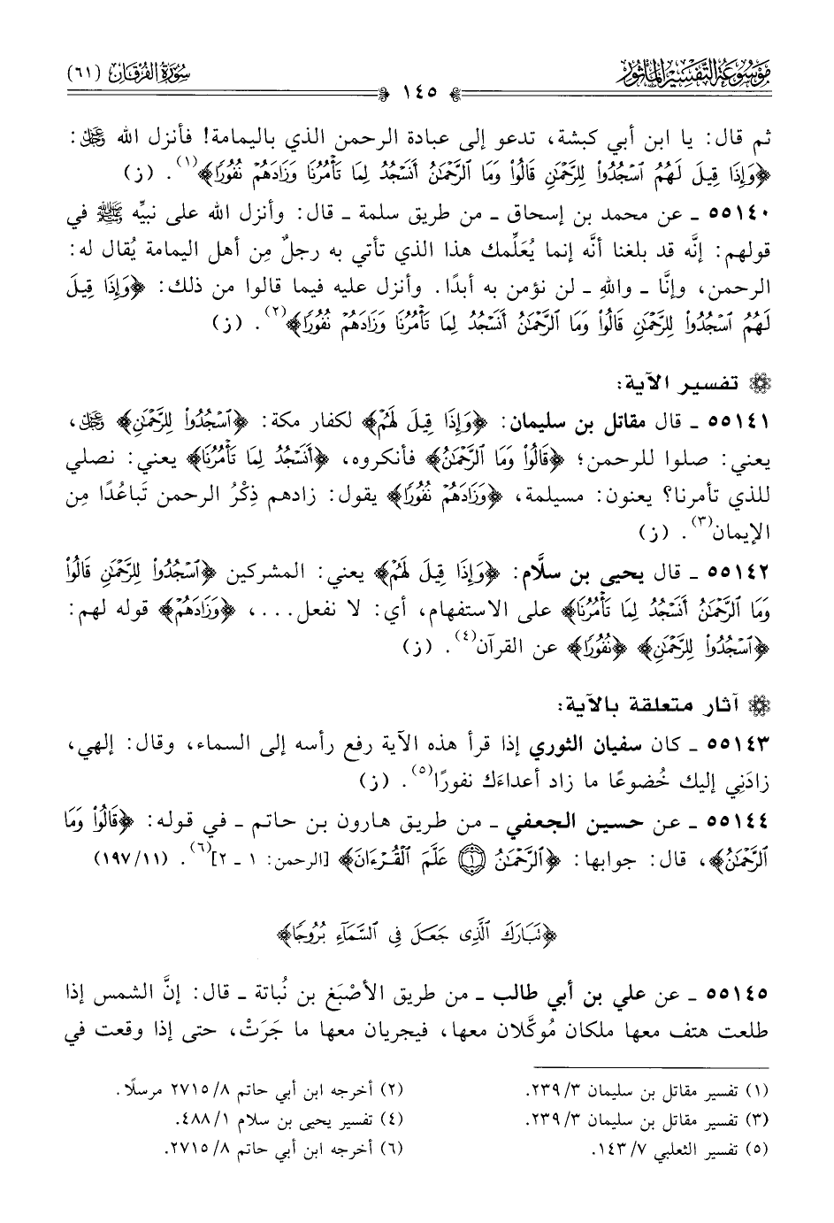 ٥٥١٤٤ - عن حسين الجعفي -من طريق هارون بن حاتم- في قوله: {قالوا وما الرحمن}، قال: جوابها: {الرحمن علم القرآن} [الرحمن: ١ - ٢] (¬٦). (١١/ ١٩٧)