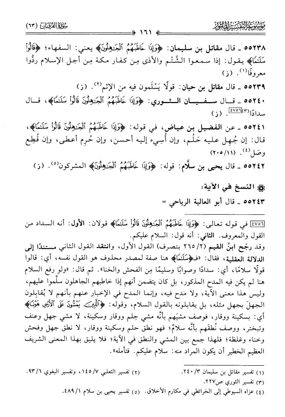 ٥٥٢٤٠ - قال سفيان الثوري: {وإذا خاطبهم الجاهلون قالوا سلاما}، قال سدادًا (¬٣) [٤٧٥٦]. (ز)