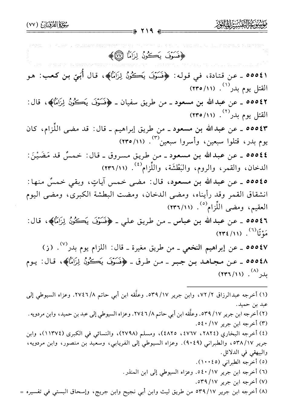 ٥٥٥٤٨ - عن مجاهد بن جبر -من طرق- {فسوف يكون لزاما}، قال: يوم بدر (¬٨). (١١/ ٢٣٦)