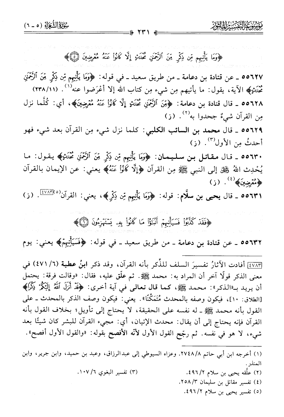 ٥٥٦٢٨ - قال قتادة بن دعامة: {من الرحمن محدث إلا كانوا عنه معرضين}، أي: كُلَّما نزل مِن القرآن شيءٌ جحدوا به (¬٢). (ز)