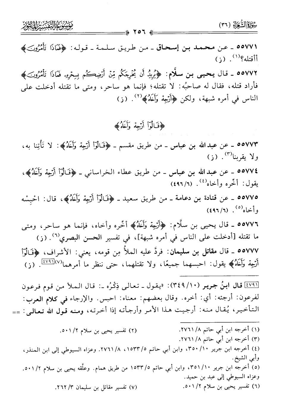 ٥٥٧٧٦ - قال يحيى بن سلّام: {أرجه وأخاه} أخِّره وأخاه، فإنما هو ساحر، ومتى ما تقتله [أدخلت على الناس في أمره شبهة]، في تفسير الحسن البصري (¬٦). (ز)