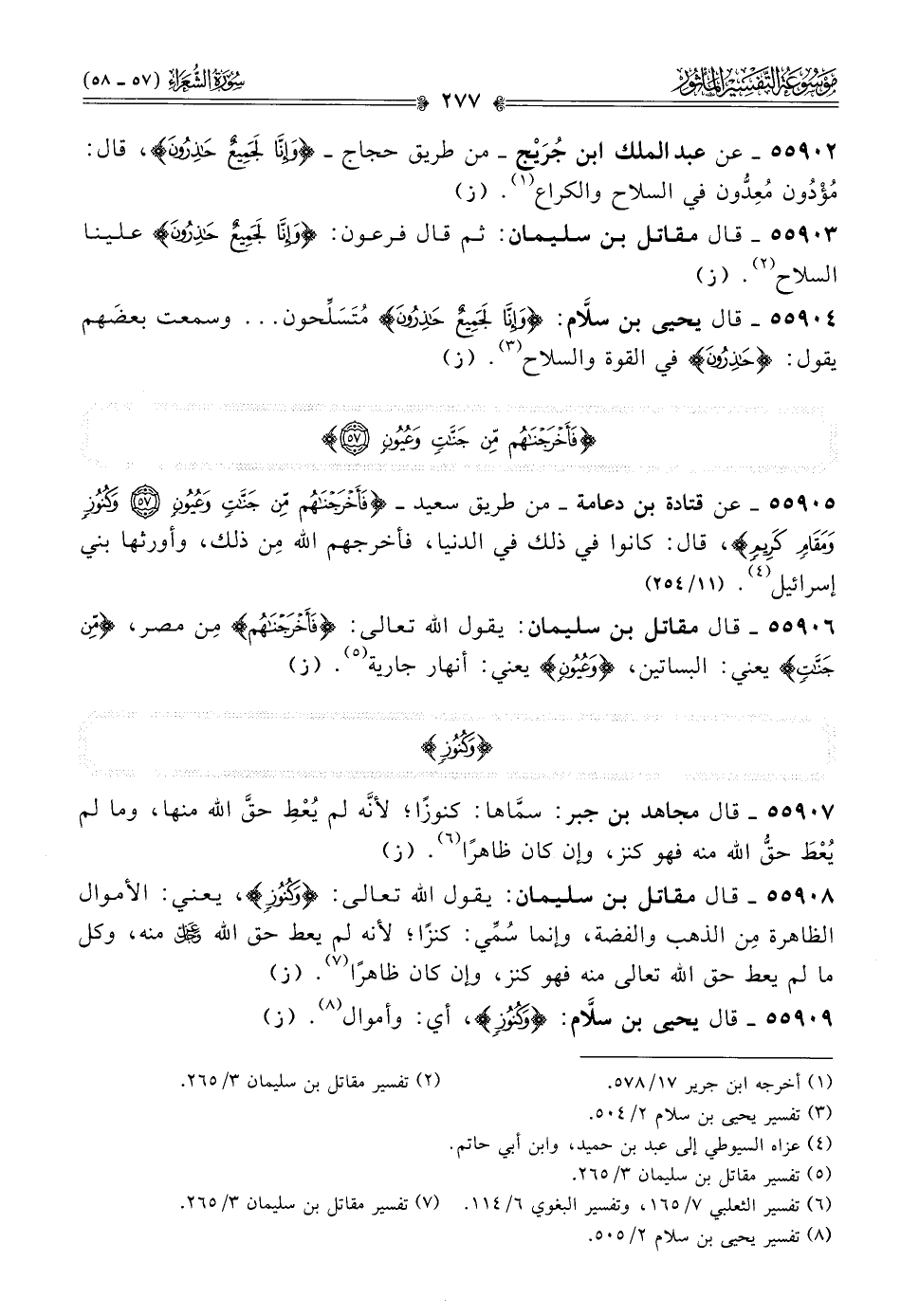 ٥٥٩٠٦ - قال مقاتل بن سليمان: يقول الله تعالى: {فأخرجناهم} مِن مصر، {من جنات} يعني: البساتين، {وعيون} يعني: أنهار جارية (¬٥). (ز)