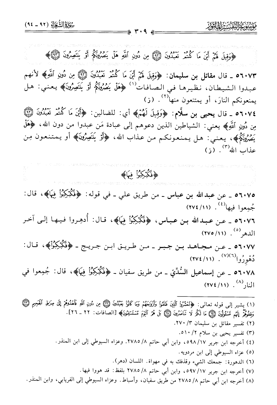 ٥٦٠٧٧ - عن مجاهد بن جبر -من طريق ابن جريج- {فكبكبوا}، قال: دُهْوِرُوا (¬٦) (¬٧). (١١/ ٢٧٤)