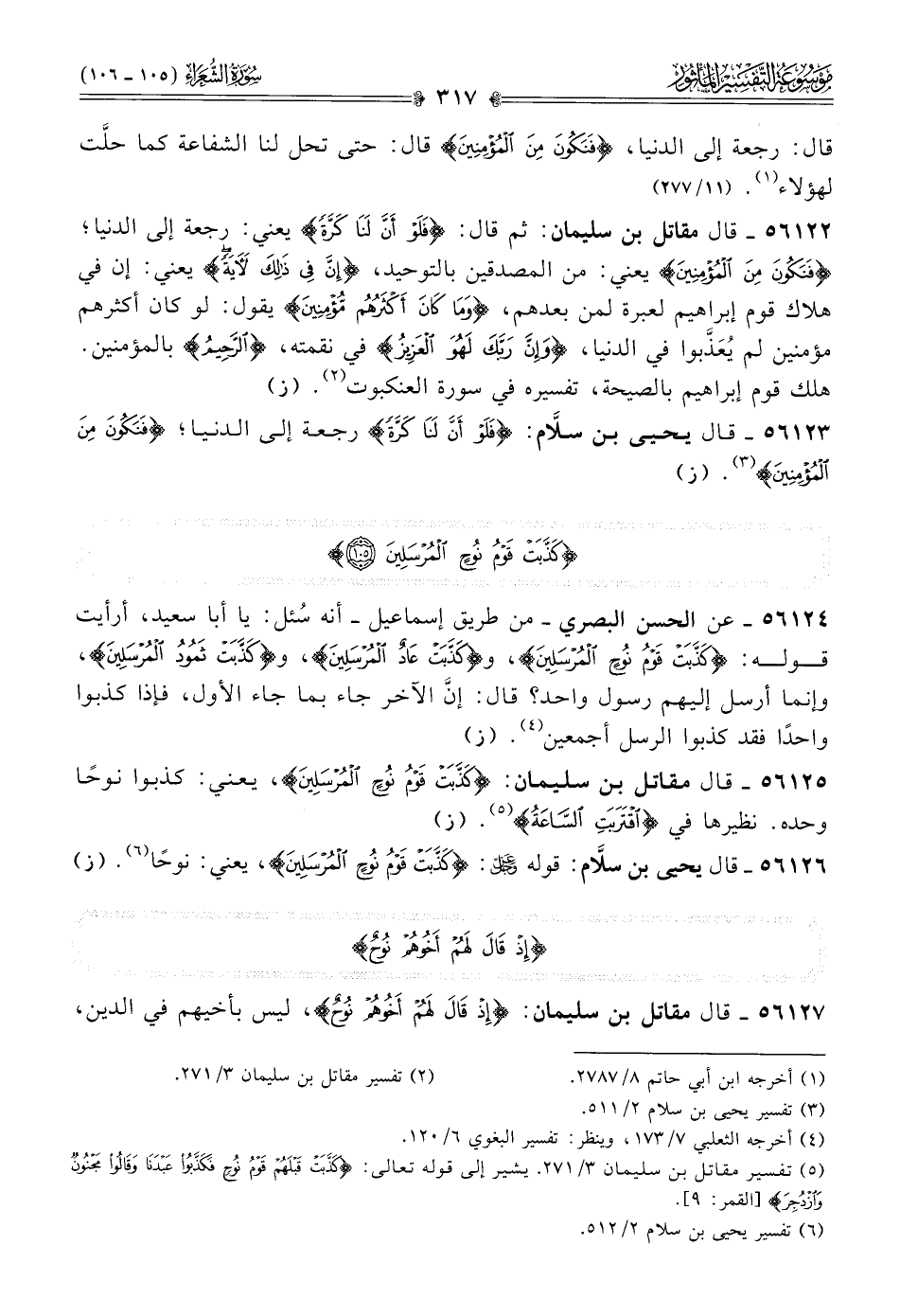 ٥٦١٢٦ - قال يحيى بن سلّام: قوله - عز وجل -: {كذبت قوم نوح المرسلين}، يعني: نوحًا (¬٦). (ز)