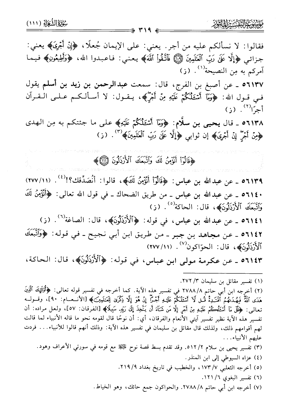 ٥٦١٤٣ - عن عكرمة مولى ابن عباس، في قوله: {الأرذلون}، قال: الحاكة،