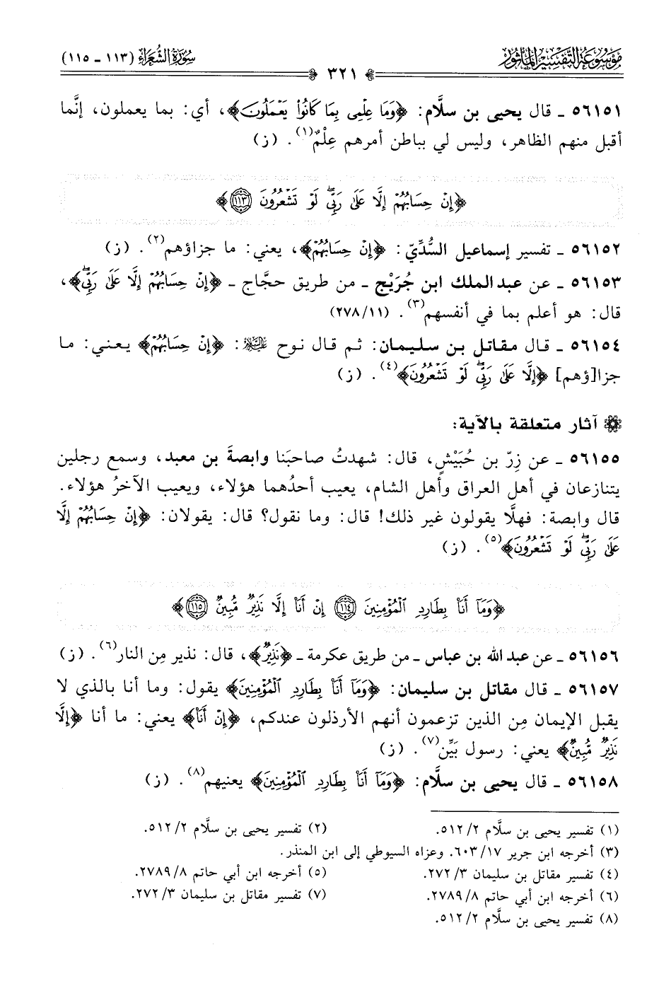 ٥٦١٥٨ - قال يحيى بن سلّام: {وما أنا بطارد المؤمنين (١١٤)} يعنيهم (¬٨). (ز)