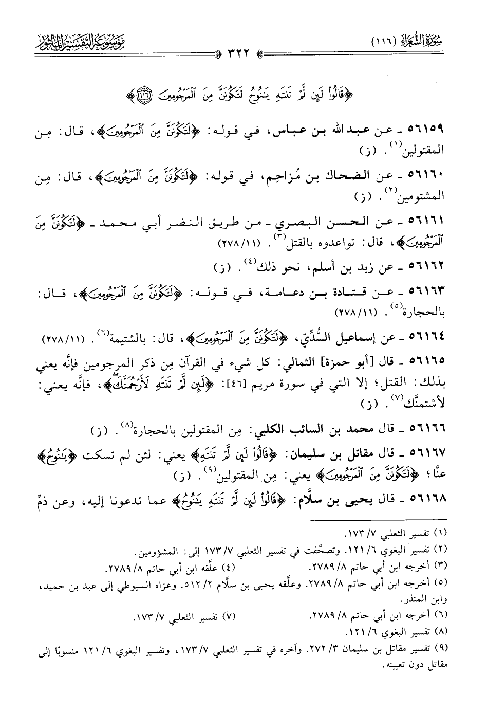 ٥٦١٦٤ - عن إسماعيل السُّدِّيّ، {لتكونن من المرجومين}، قال: بالشتيمة (¬٦). (١١/ ٢٧٨)