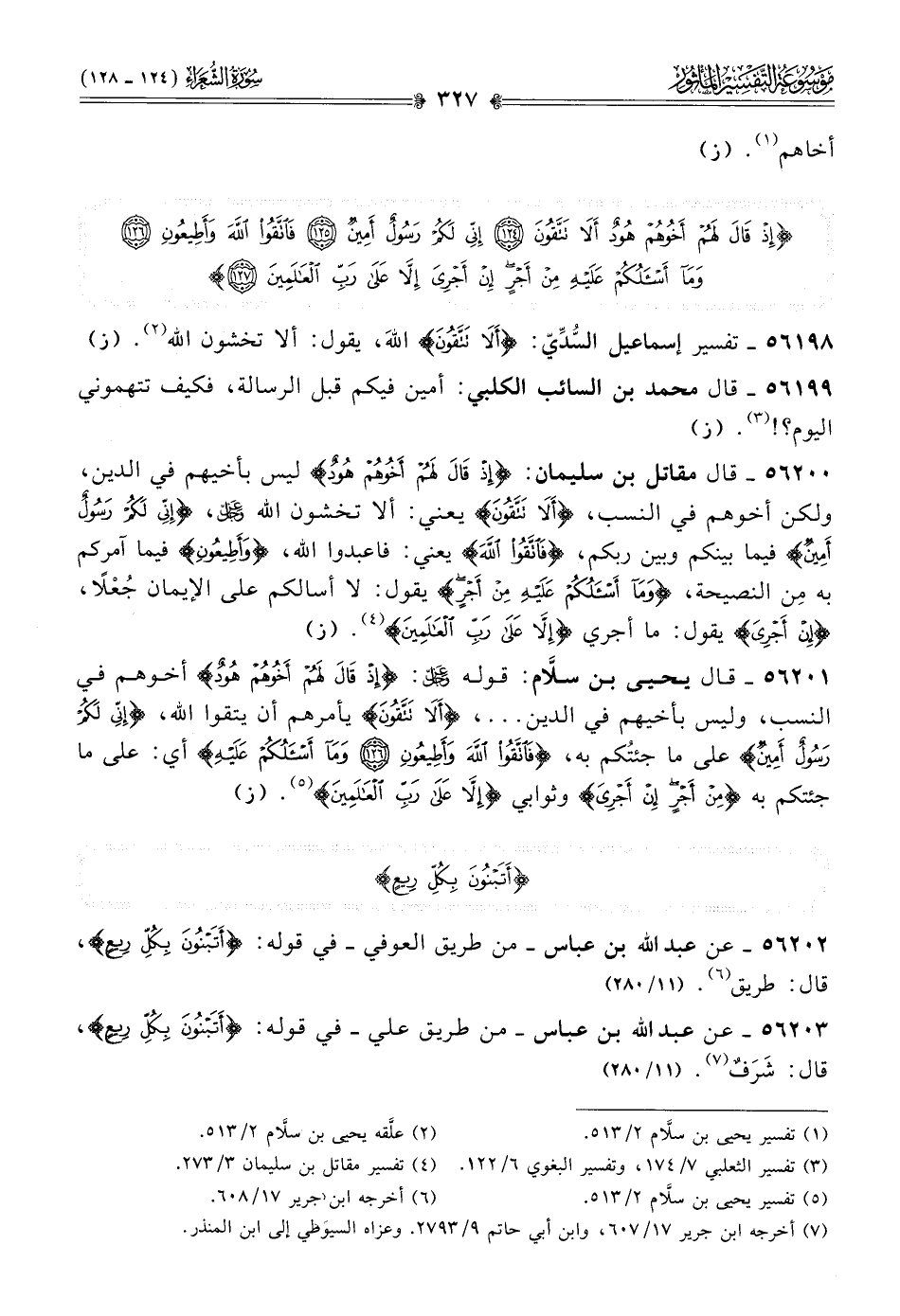 (¬٣) تفسير الثعلبي ٧/ ١٧٤، وتفسير البغوي ٦/ ١٢٢.
