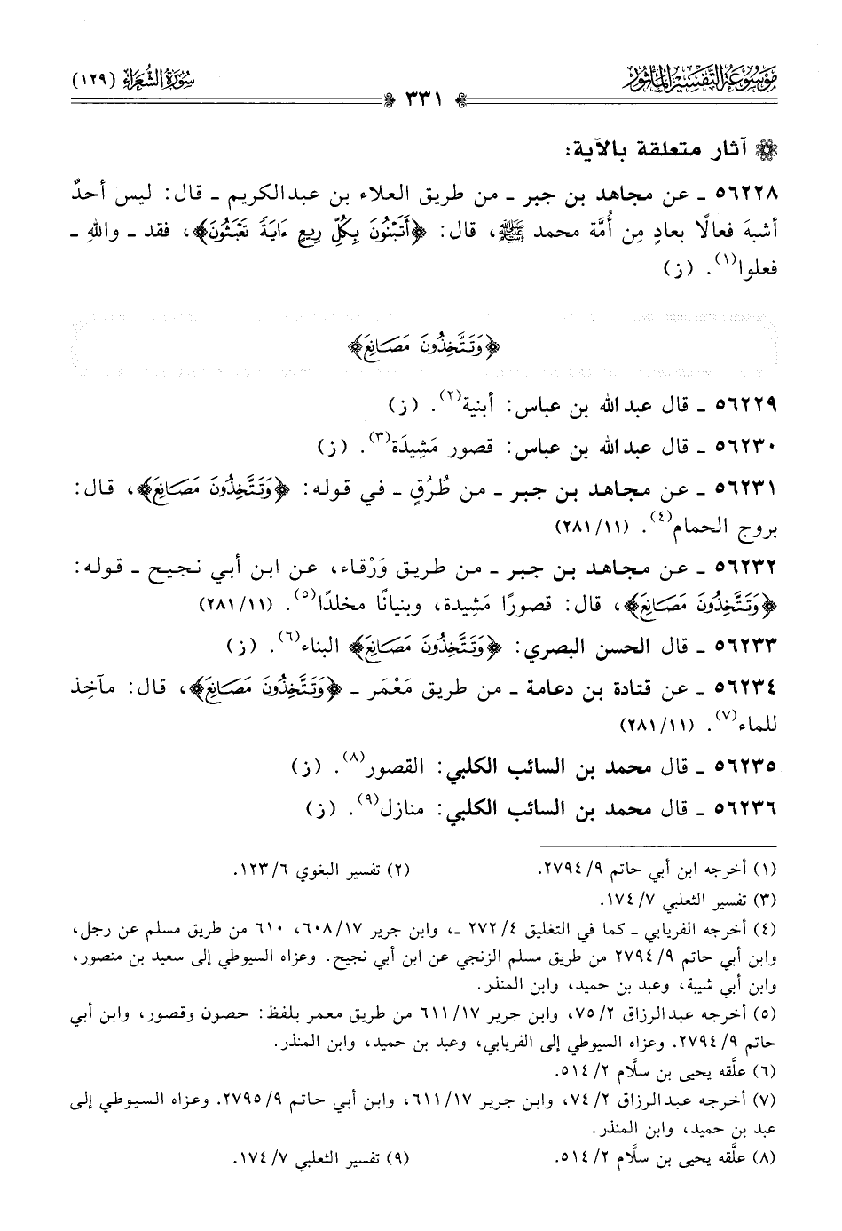 ٥٦٢٣١ - عن مجاهد بن جبر -من طُرُقٍ- في قوله: {وتتخذون مصانع}، قال: بروج الحمام (¬٤). (١١/ ٢٨١)