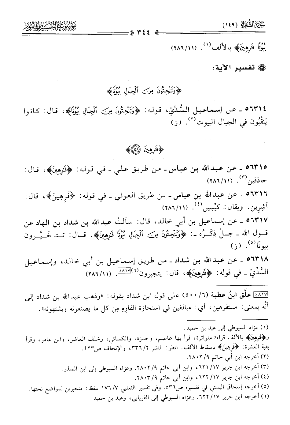 ٥٦٣١٧ - عن إسماعيل بن أبي خالد، قال: سألتُ عبد الله بن شداد بن الهاد عن قول الله -جلَّ ذِكْرُه-: {وتنحتون من الجبال بيوتا فارهين}. قال: تتخَيَّرون بيوتًا (¬٥). (ز)