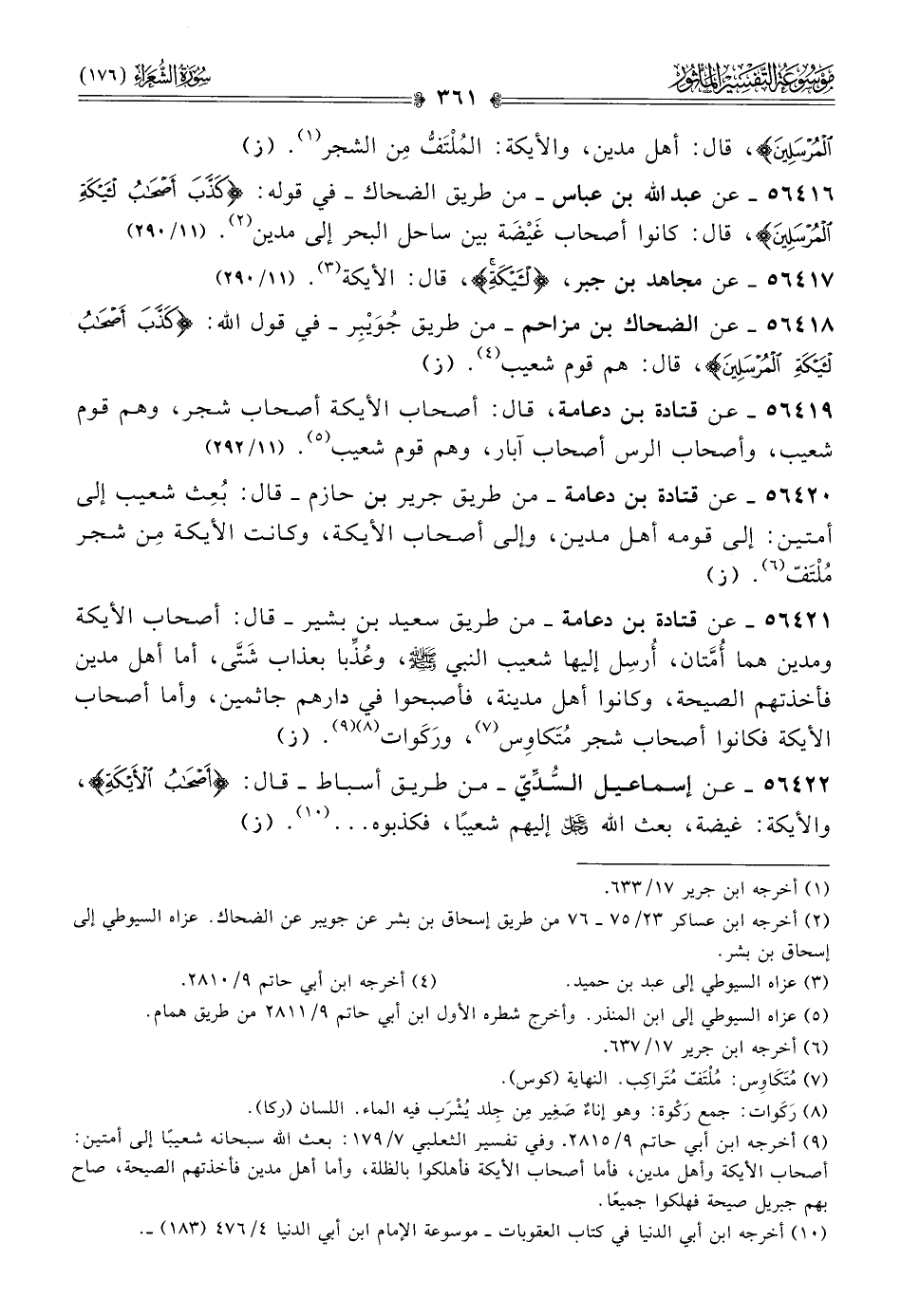 ٥٦٤١٦ - عن عبد الله بن عباس -من طريق الضحاك- في قوله: {كذب أصحاب الأيكة المرسلين}، قال: كانوا أصحاب غَيْضَة بين ساحل البحر إلى مدين (¬٢). (١١/ ٢٩٠)