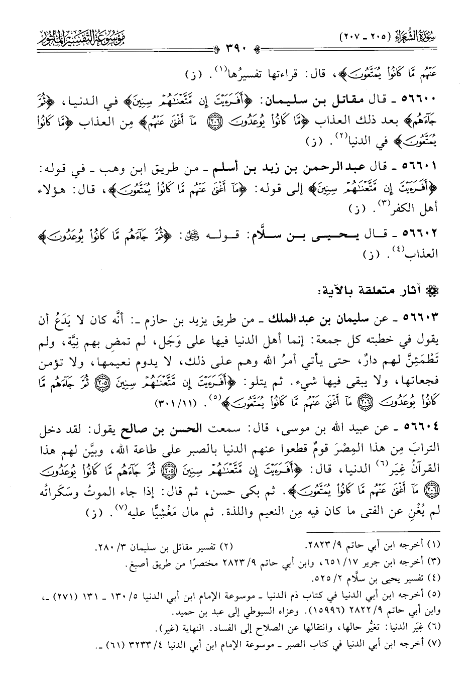٥٦٦٠١ - قال عبد الرحمن بن زيد بن أسلم -من طريق ابن وهب- في قوله: {أفرأيت إن متعناهم سنين} إلى قوله: {ما أغنى عنهم ما كانوا يمتعون}، قال: هؤلاء أهل الكفر (¬٣). (ز)