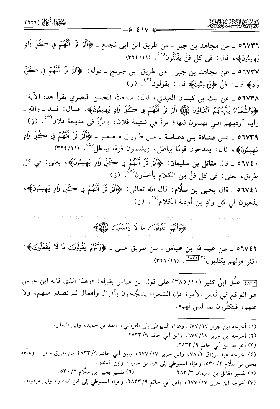 [٤٨٣٢] علَّق ابنُ كثير (١٠/ ٣٨٥) على قول ابن عباس بقوله: «وهذا الذي قاله ابن عباس هو الواقع في نَفْس الأمر؛ فإن الشعراء يتبجَّحون بأقوال وأفعال لم تصدر منهم، ولا عنهم، فيتكثَّرون بما ليس لهم».