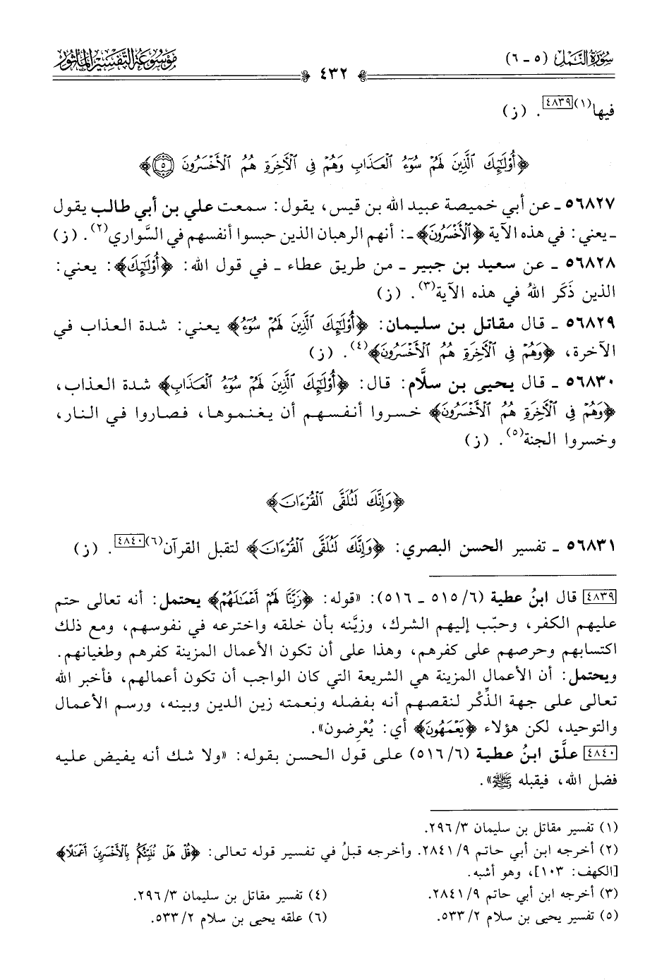 (¬٦) علقه يحيى بن سلام ٢/ ٥٣٣.