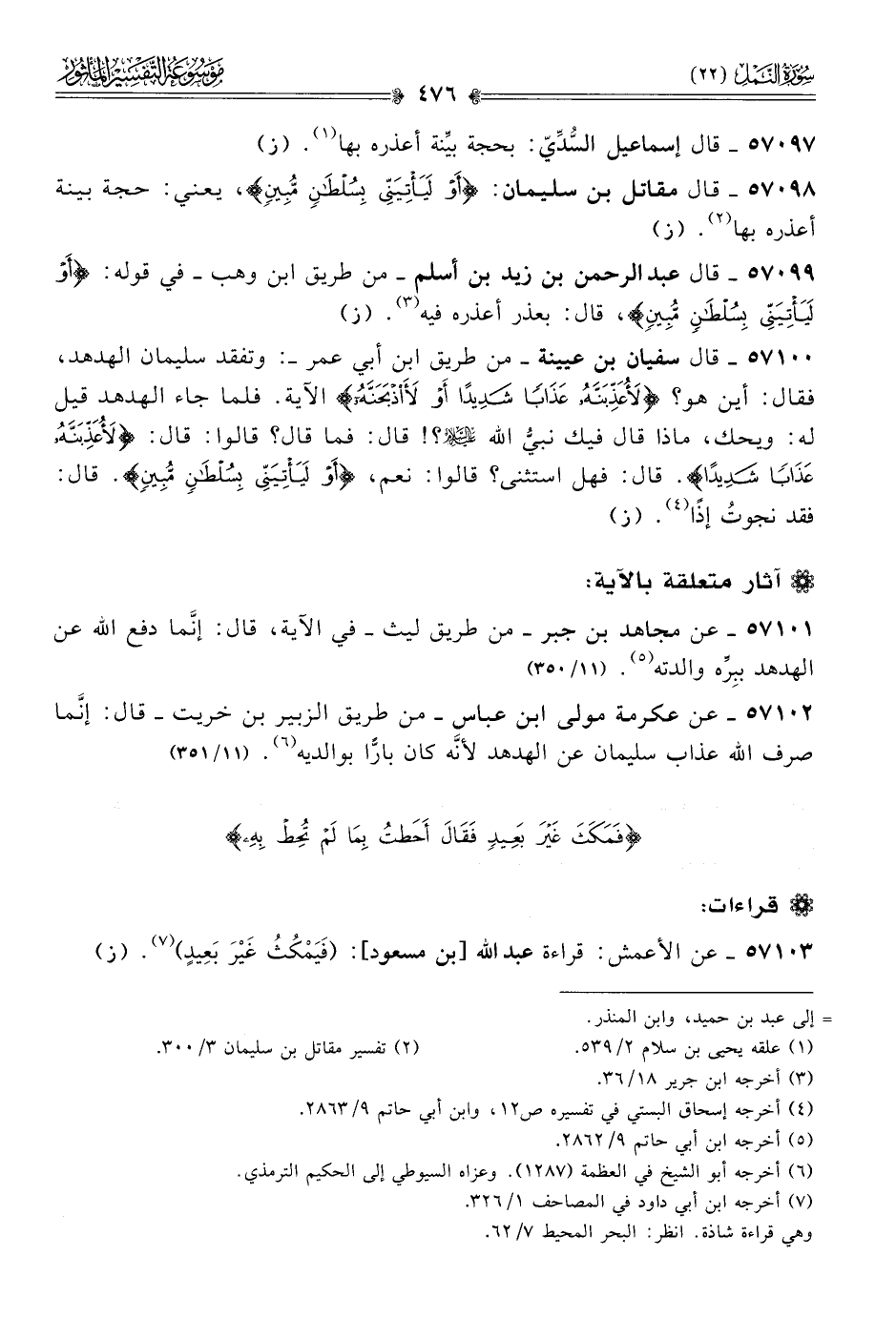 ٥٧١٠٣ - عن الأعمش: قراءة عبد الله [بن مسعود]: (فَيَمْكُثُ غَيْرَ بَعِيدٍ) (¬٧). (ز)