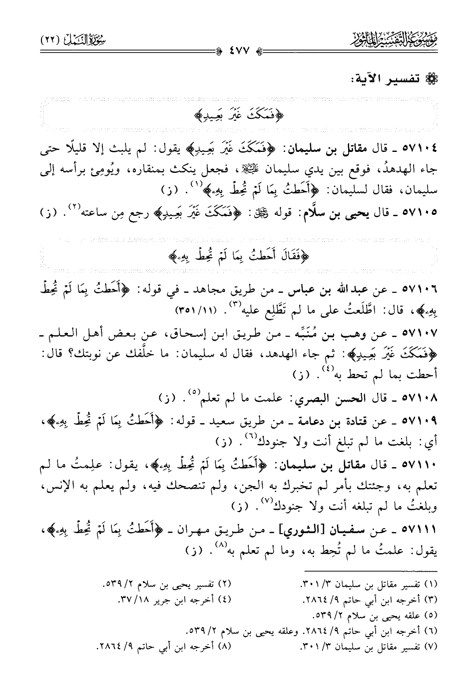 (¬٥) علقه يحيى بن سلام ٢/ ٥٣٩.